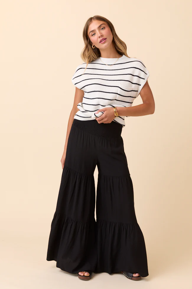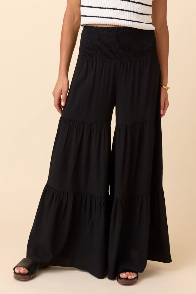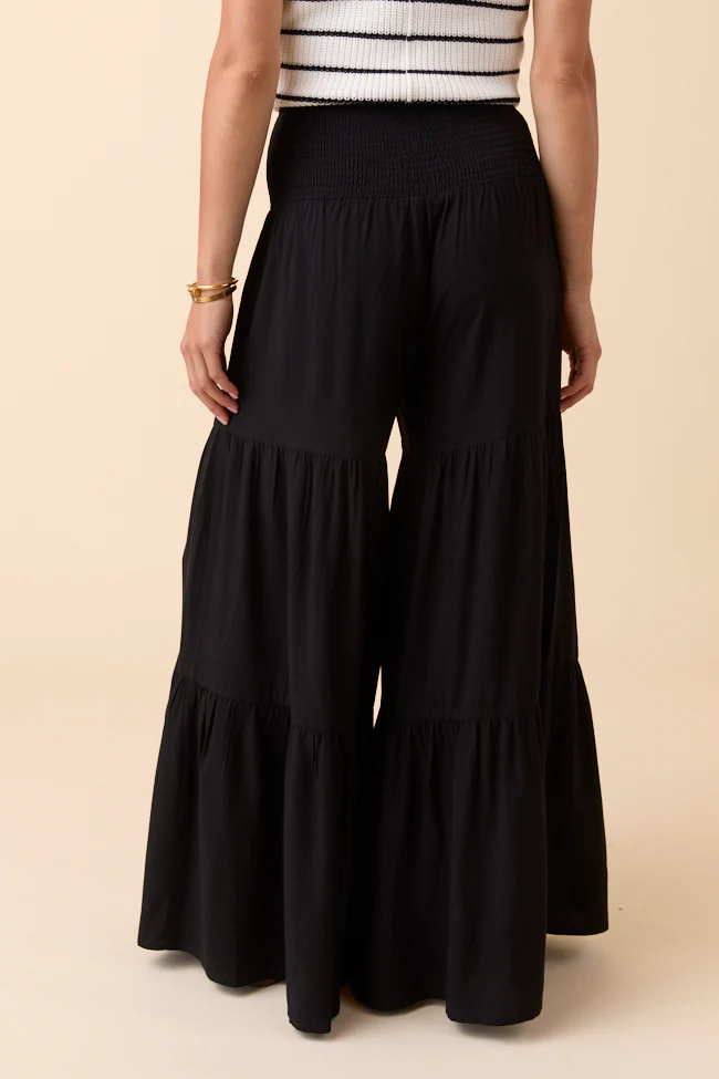 In The Breeze Black Gauze Pull On Wide Leg Pants FINAL SALE