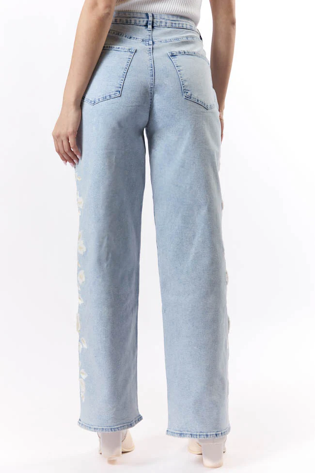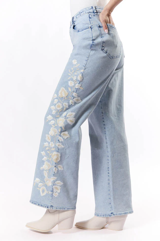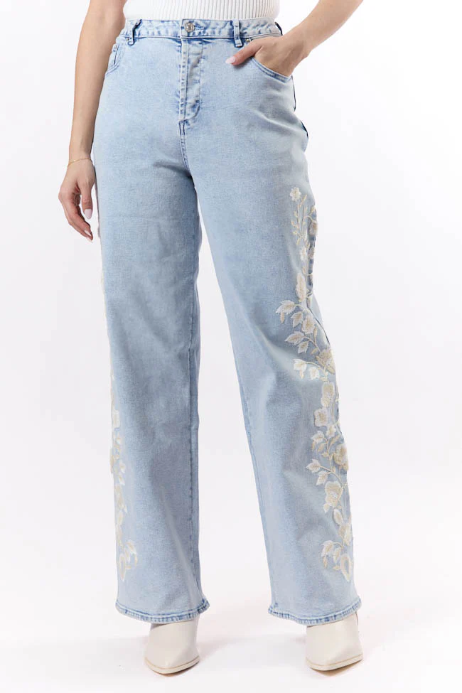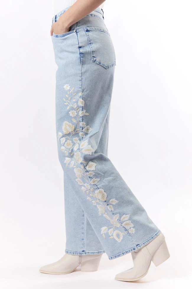 Daisy Light Wash Floral Embroidered Wide Leg Jeans FINAL SALE