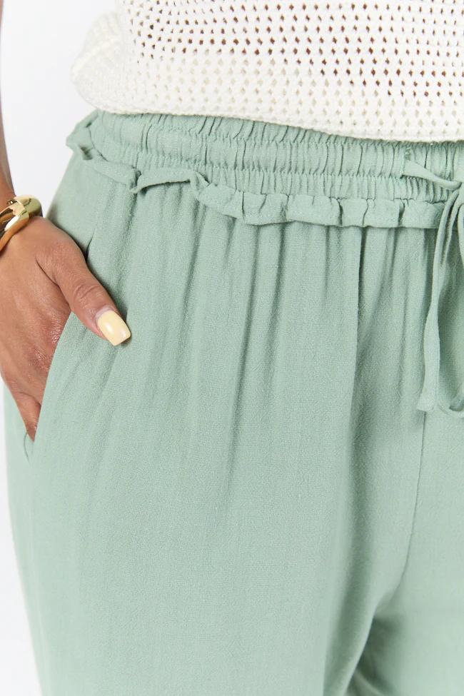 Full Sail Olive Linen Blend Pull On Pants FINAL SALE