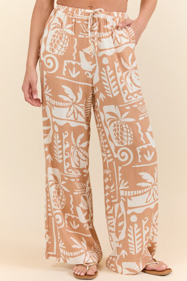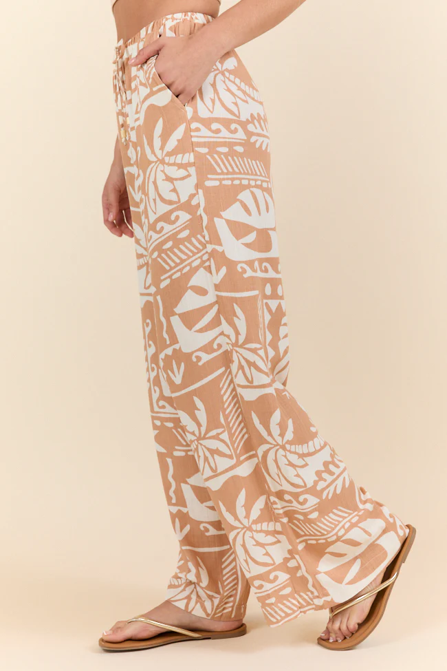 Island Escape Taupe Printed Pull On Pants FINAL SALE