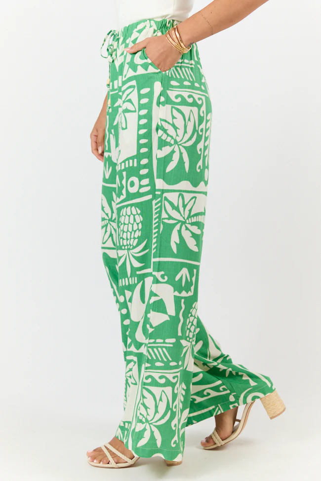 Island Escape Green Printed Pull On Pants