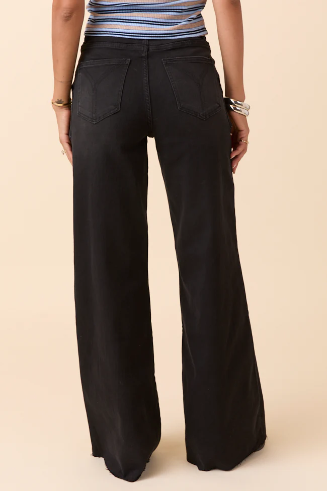 Cora Black Rock High Rise Wide Leg Jeans