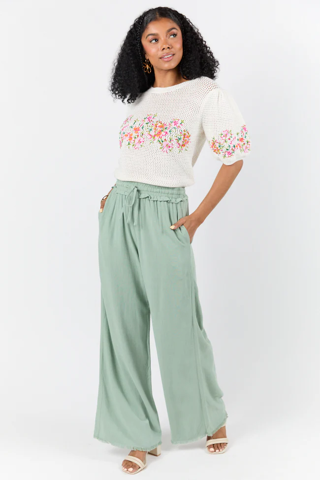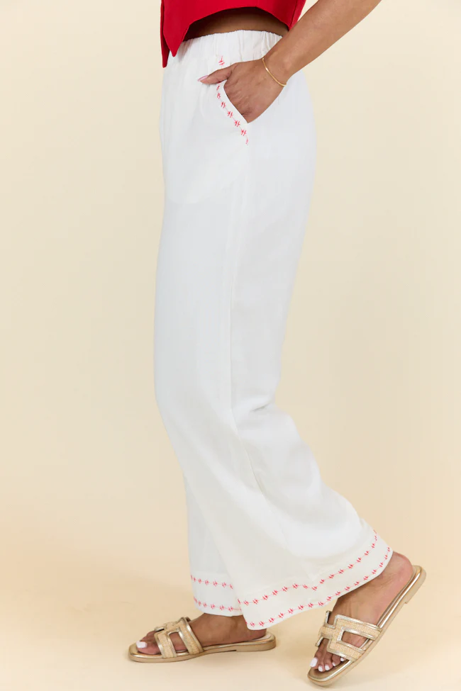 Just Feels Right Off-White Embroidered Pants FINAL SALE