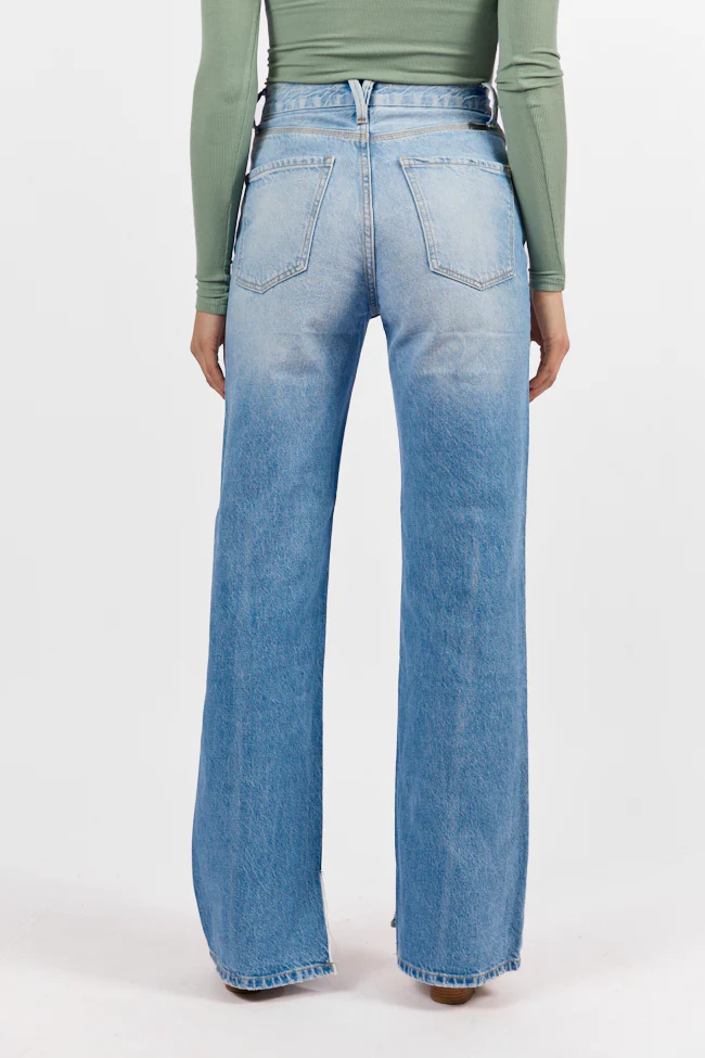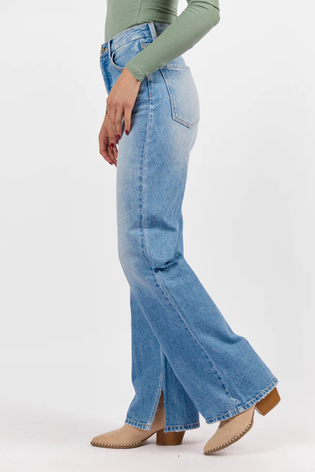 Emily Light Wash 90's Flare Split Hem Wide Leg Jeans SALE