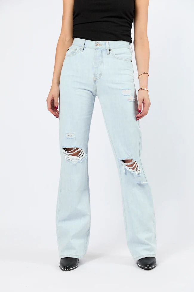 Karter Light Wash Wide Leg Distressed 90's Flare Jeans SALE