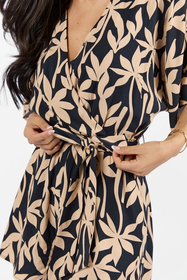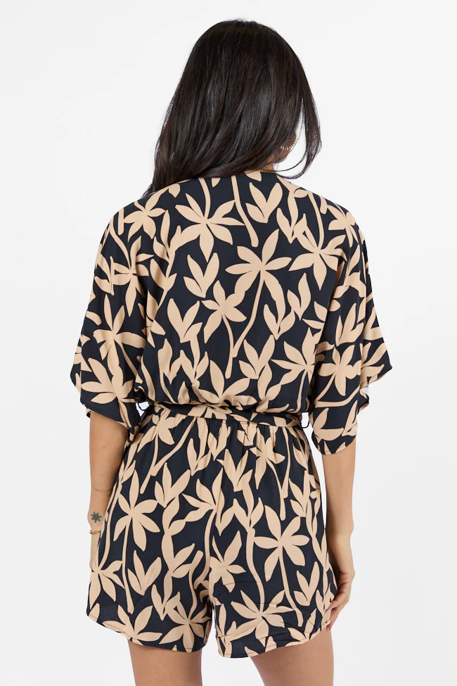 Palm Shores Neutral Print Surplice Romper FINAL SALE