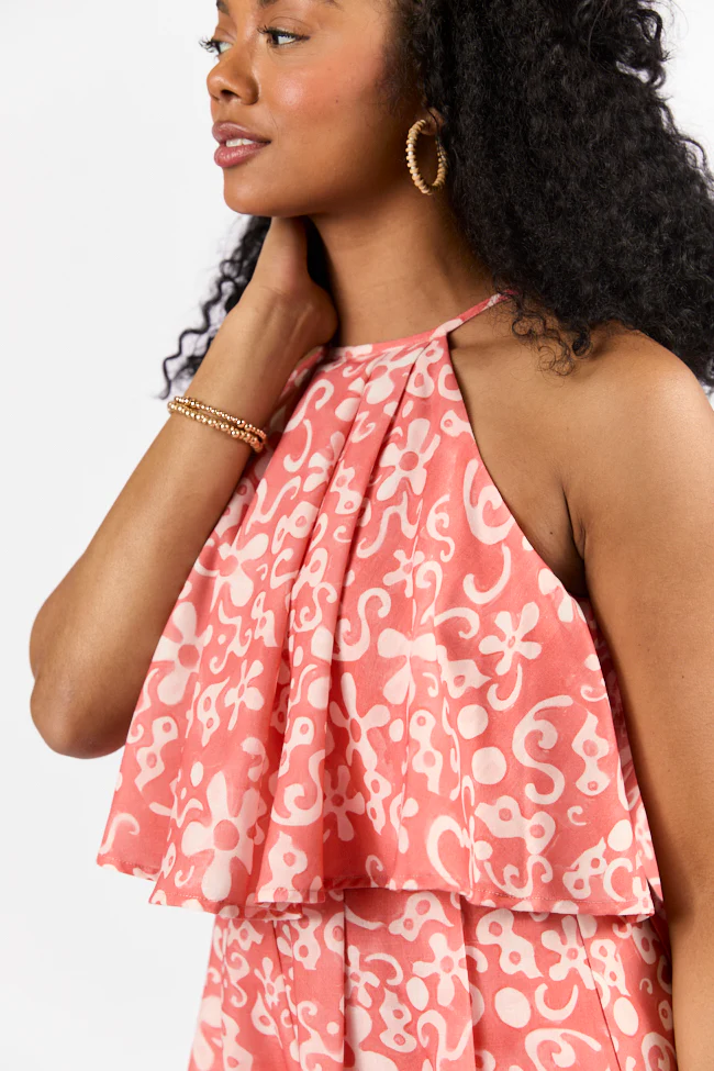 Spotlight Moment Coral Print Halter Neck Romper FINAL SALE