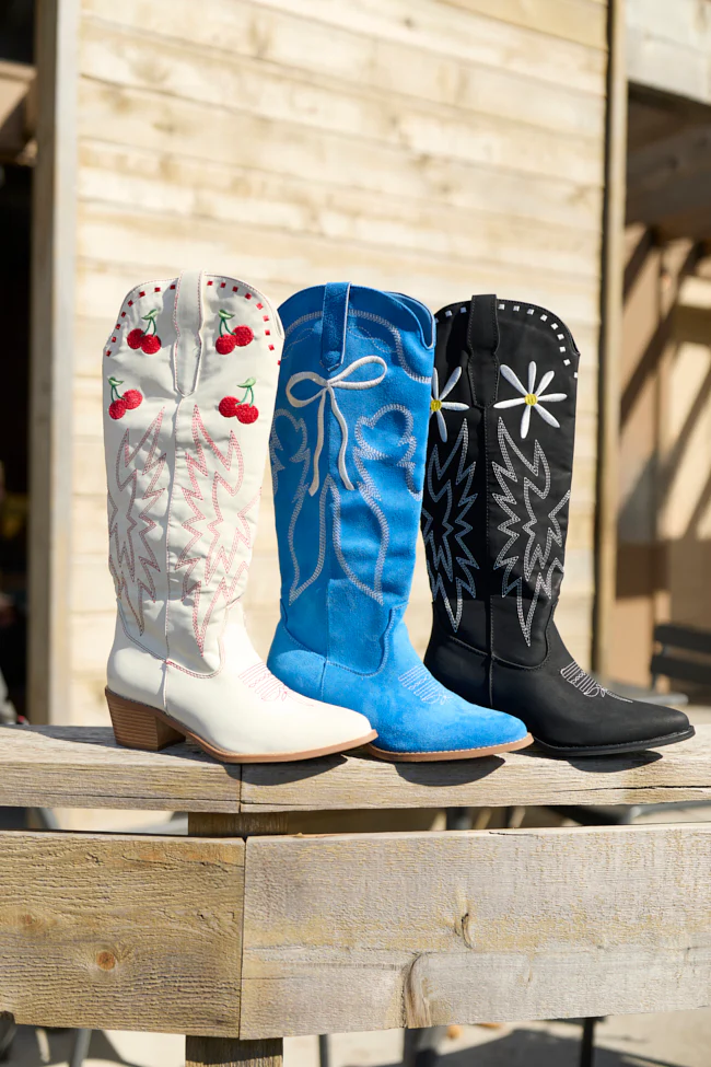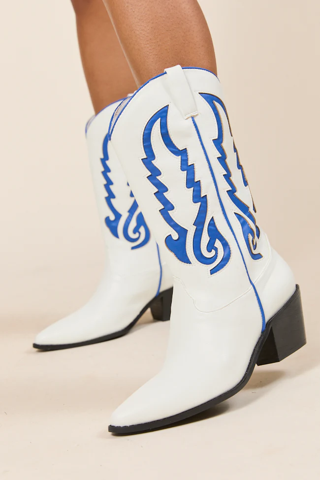 Patti Blue and White Western Boots