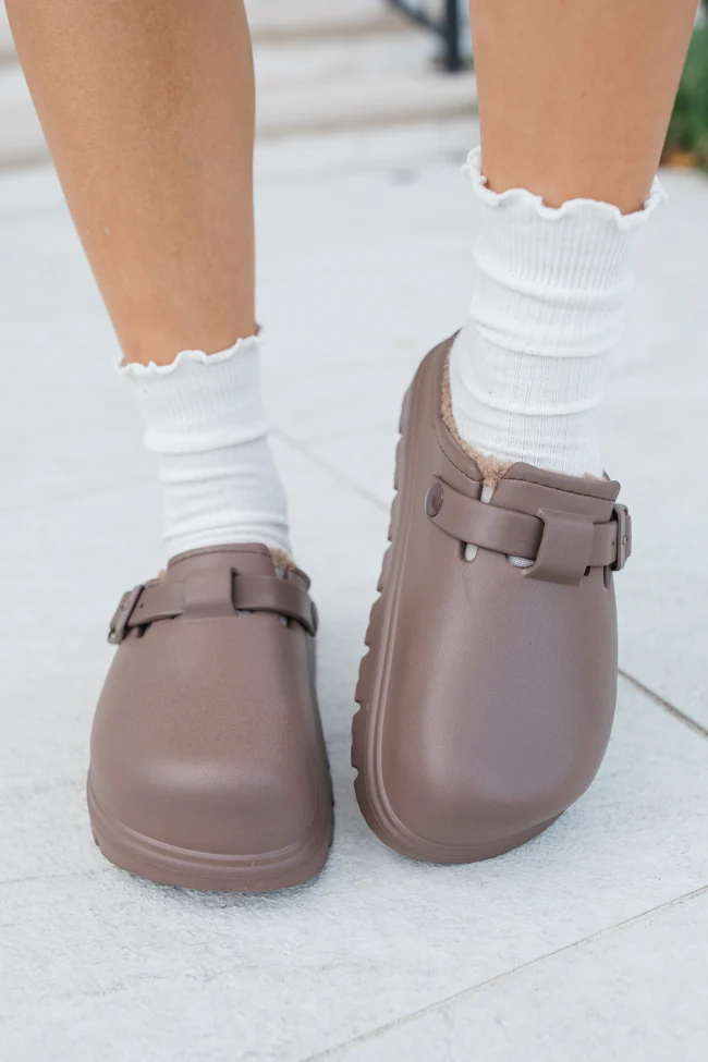 Palmer Chocolate Rubber Sherpa Lined Slip-on Clogs FINAL SALE