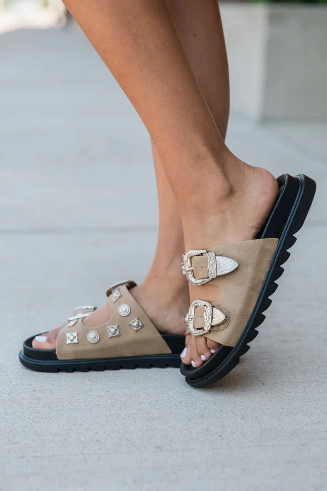 LeeAnn Taupe Double Buckle Western Sandals FINAL SALE
