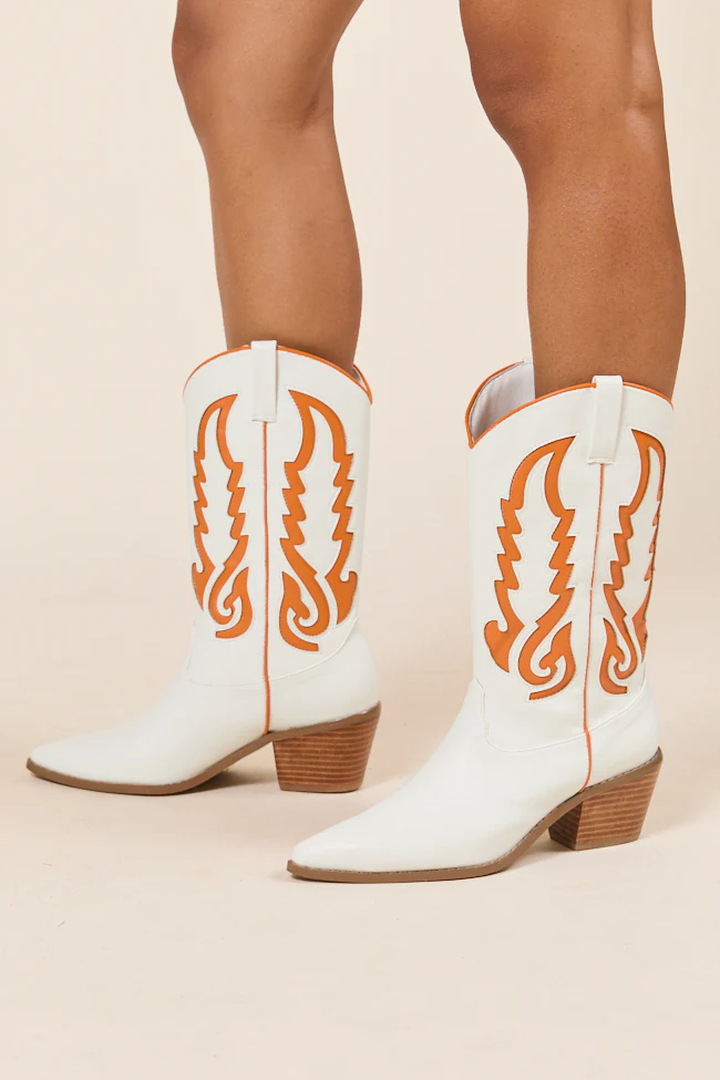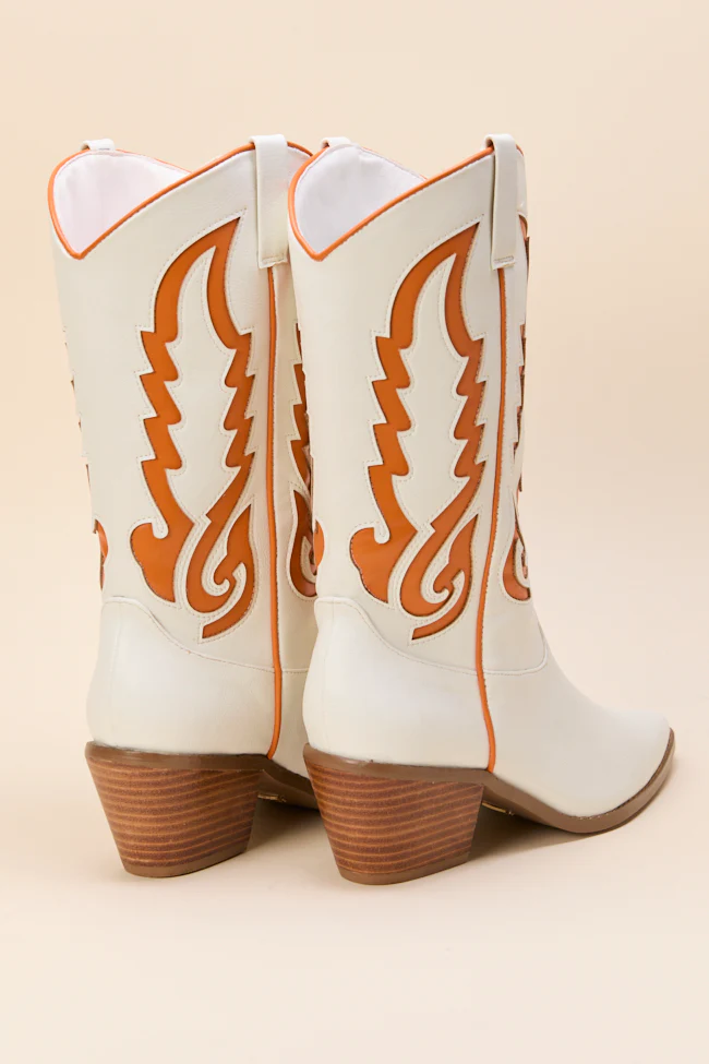 Patti Orange and White Western Boots