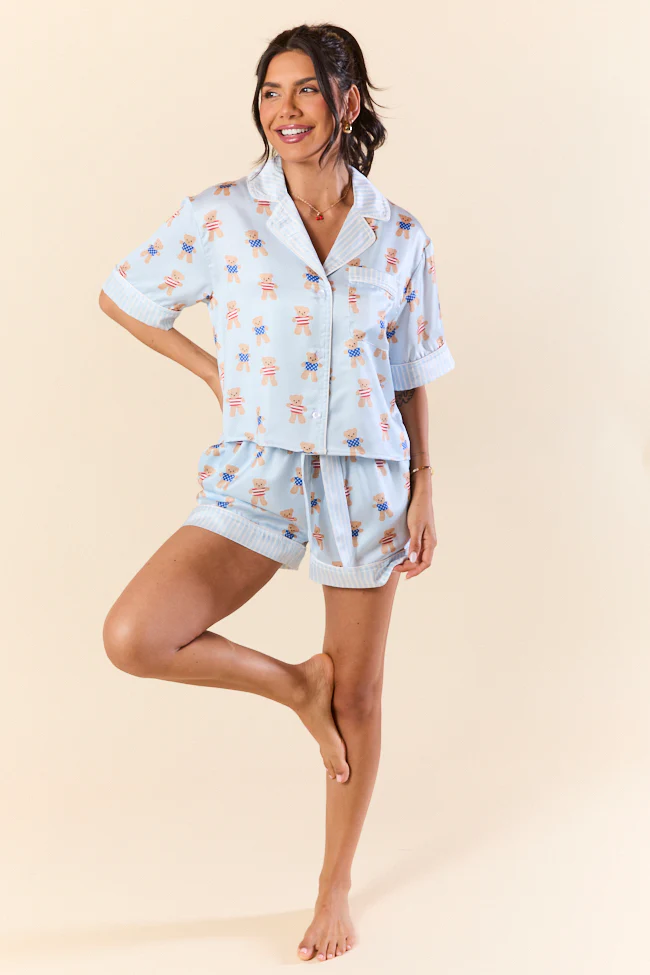 Bearly Asleep Teddy Bear Printed Pajama Shorts FINAL SALE