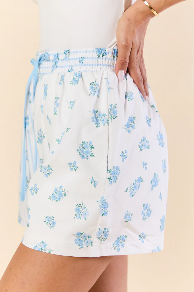 Bouquets Of Love Ivory and Blue Belted Floral Shorts FINAL SALE