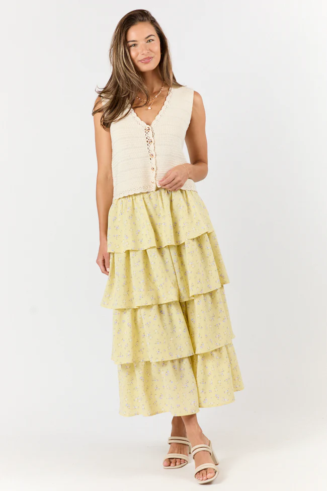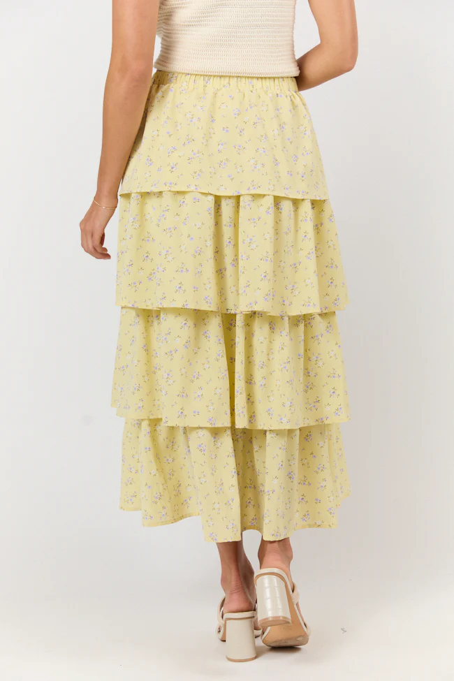Meet Me Halfway Yellow Tiered Floral Maxi Skirt FINAL SALE