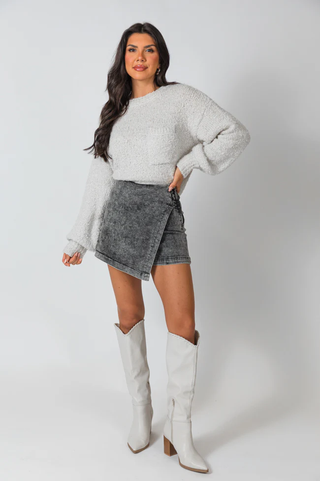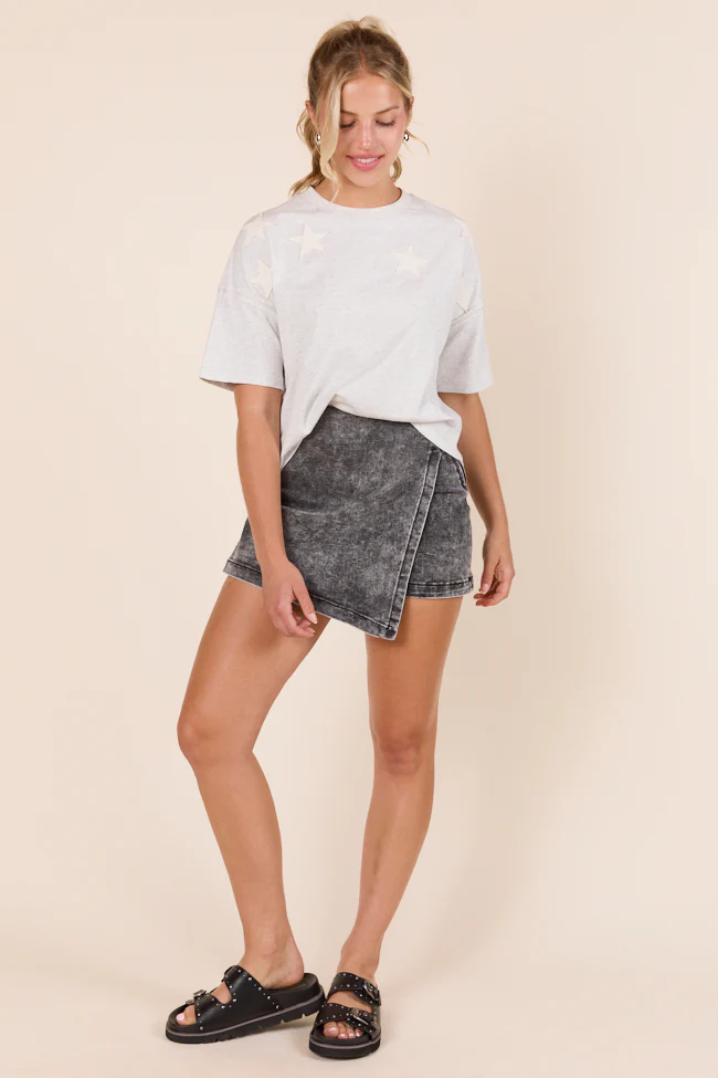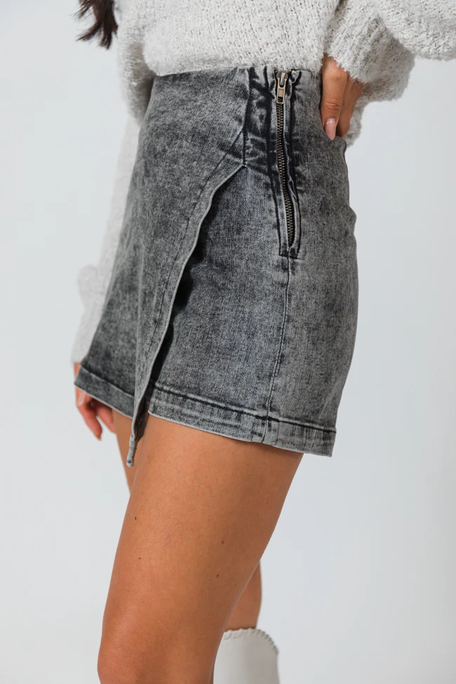 My Favorite Black Acid Wash Denim Skort