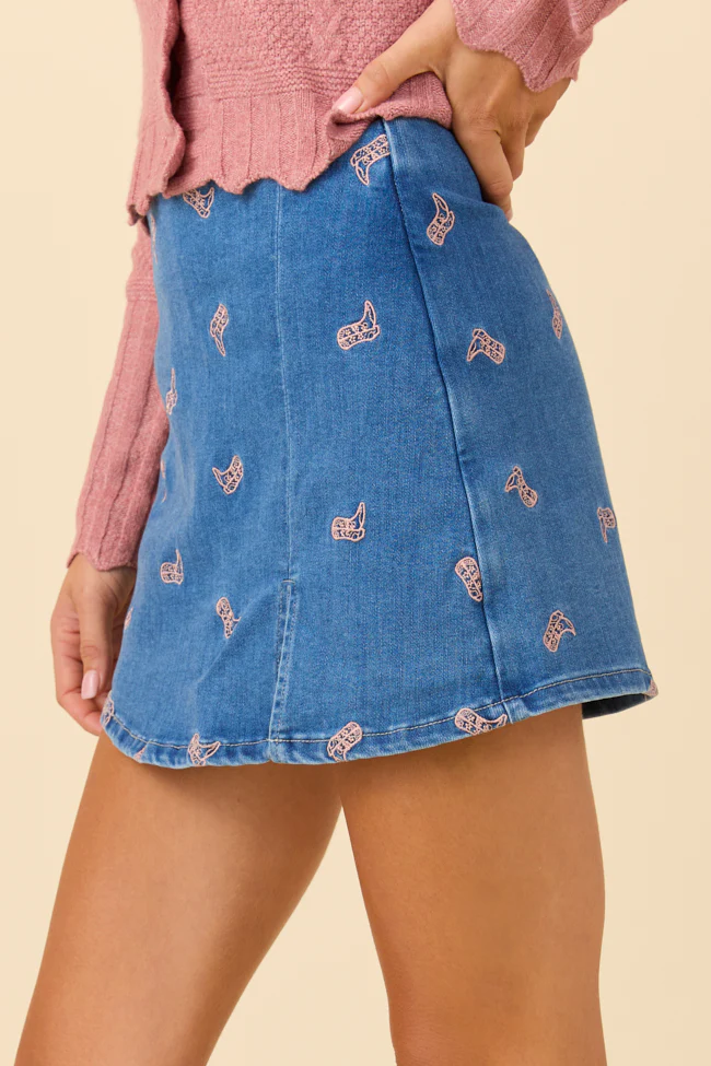 My Favorite Medium Wash Boot Embroidery Skort