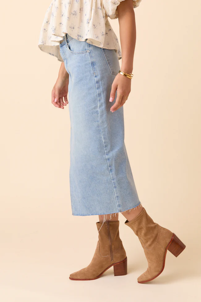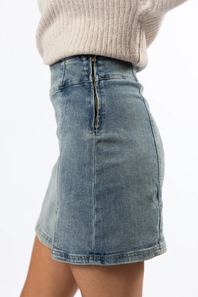 My Time To Shine Medium Wash Side Slit Denim Skirt