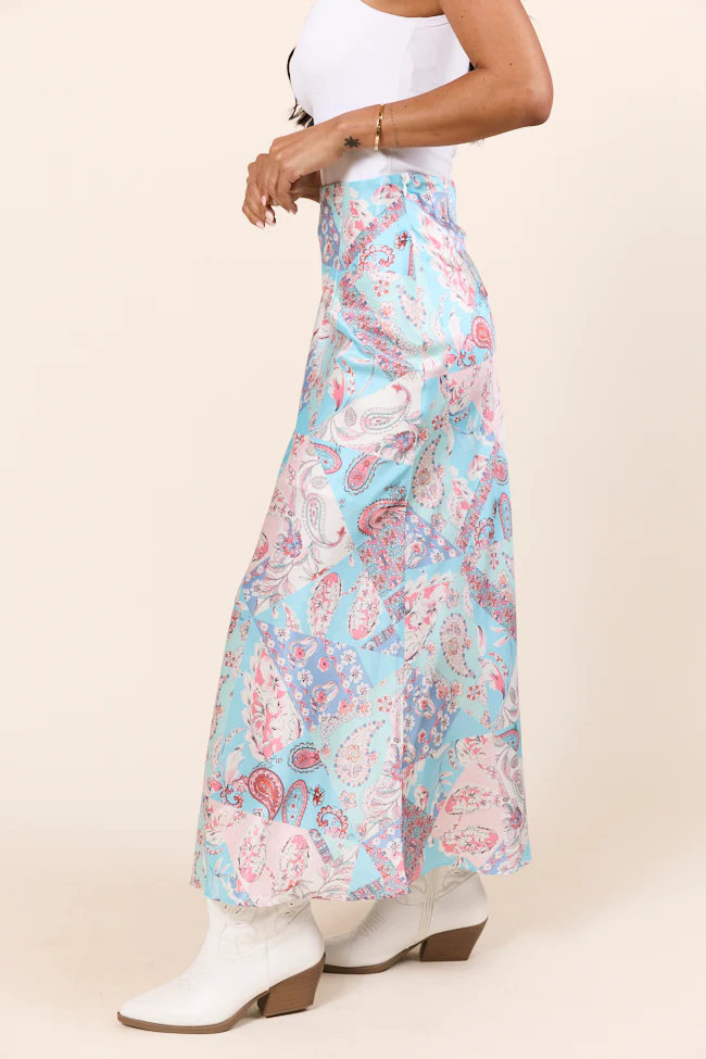 March On Blue Floral Print Knit Skirt