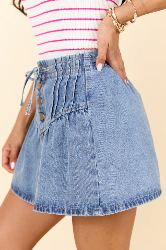 Little By Little Medium Wash Drawstring Denim Skirt