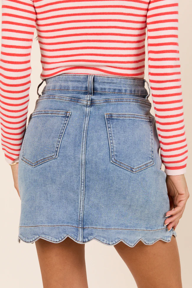 My Favorite Medium Wash Scallop Detail Skirt