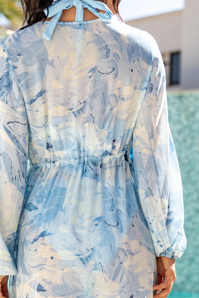 Shine On Blue Printed Long Sleeve Swim Cover-up FINAL SALE