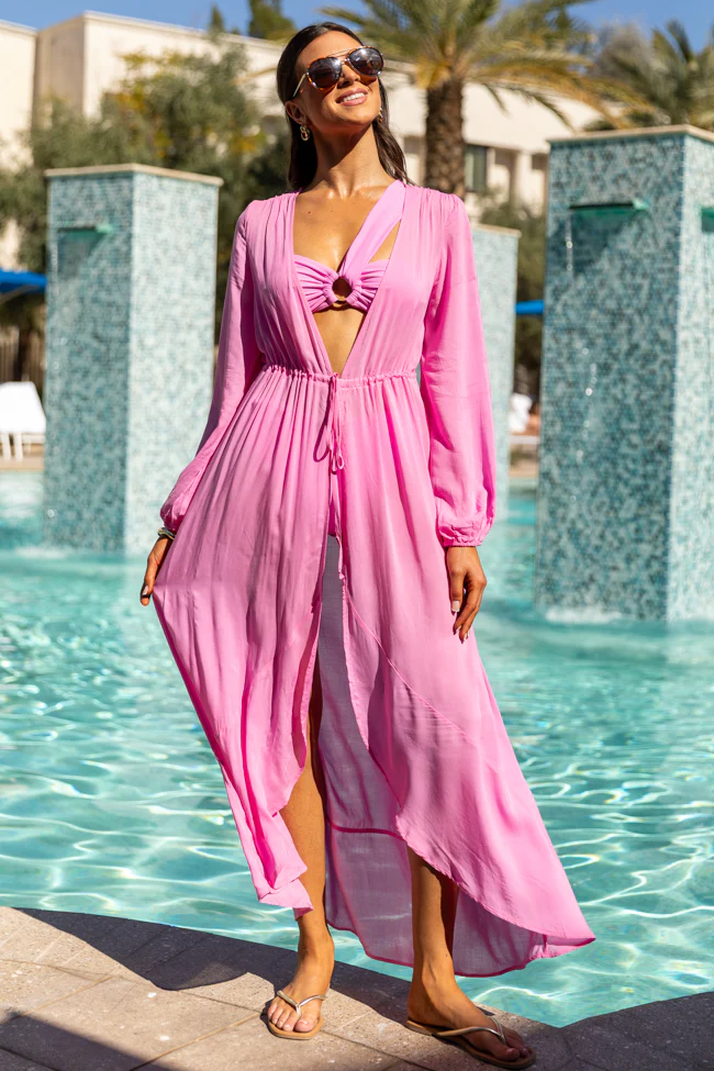 Shine On Pink Long Sleeve Swim Cover-up FINAL SALE