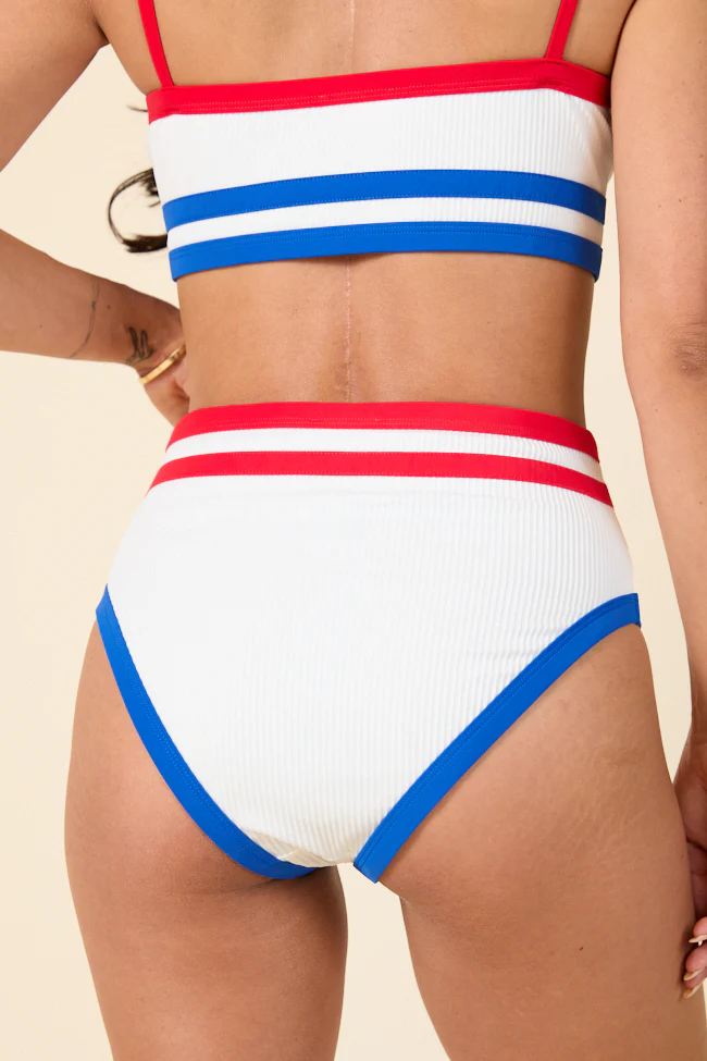 Red White And You White Ribbed High Waisted Bikini Bottoms FINAL SALE