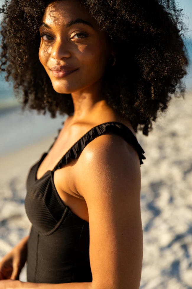 Ride The Waves Black Ruffle Shoulder One Piece Swimsuit FINAL SALE