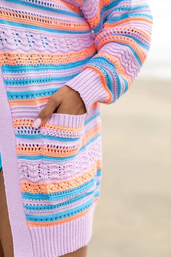 Pass On By Purple Multi Striped Open Knit Cardigan FINAL SALE