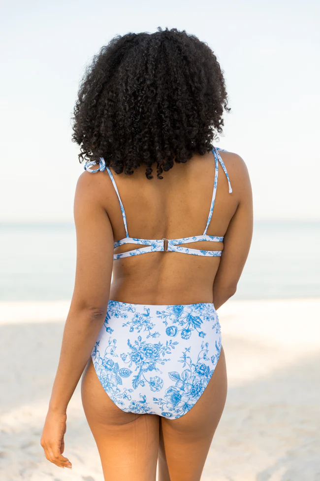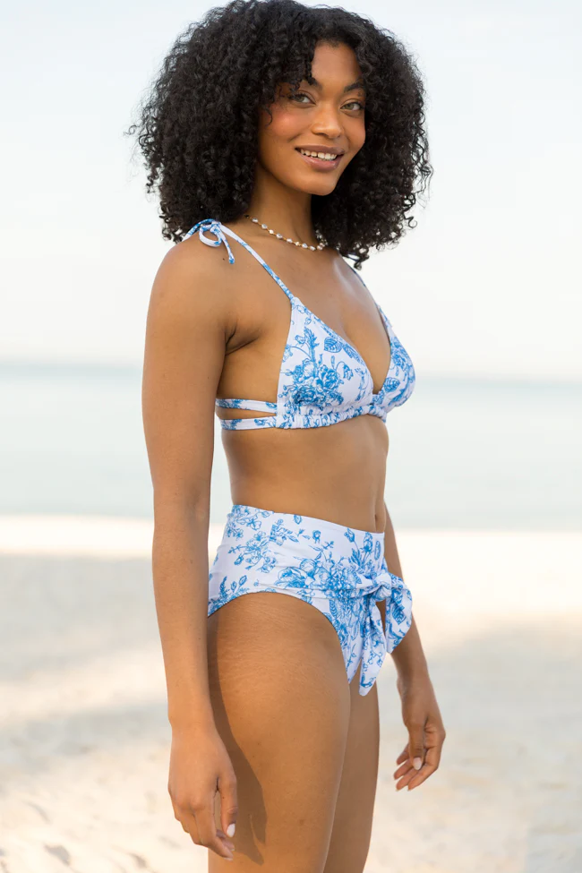 Marina Mood Blue and Ivory Vintage Floral Print Bikini Top FINAL SALE