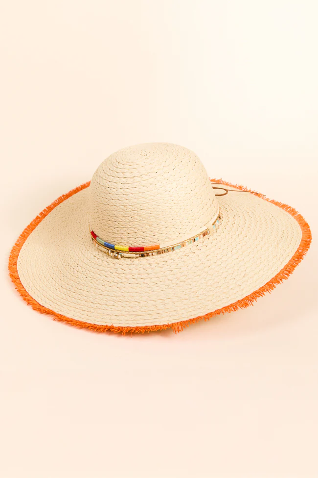 Natural Orange Fringe Trim Straw Hat FINAL SALE