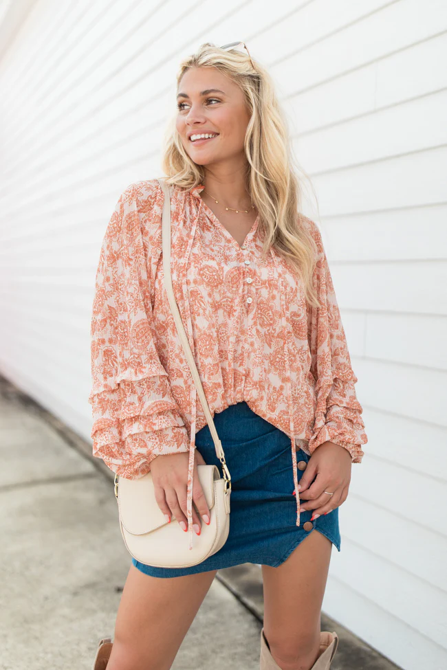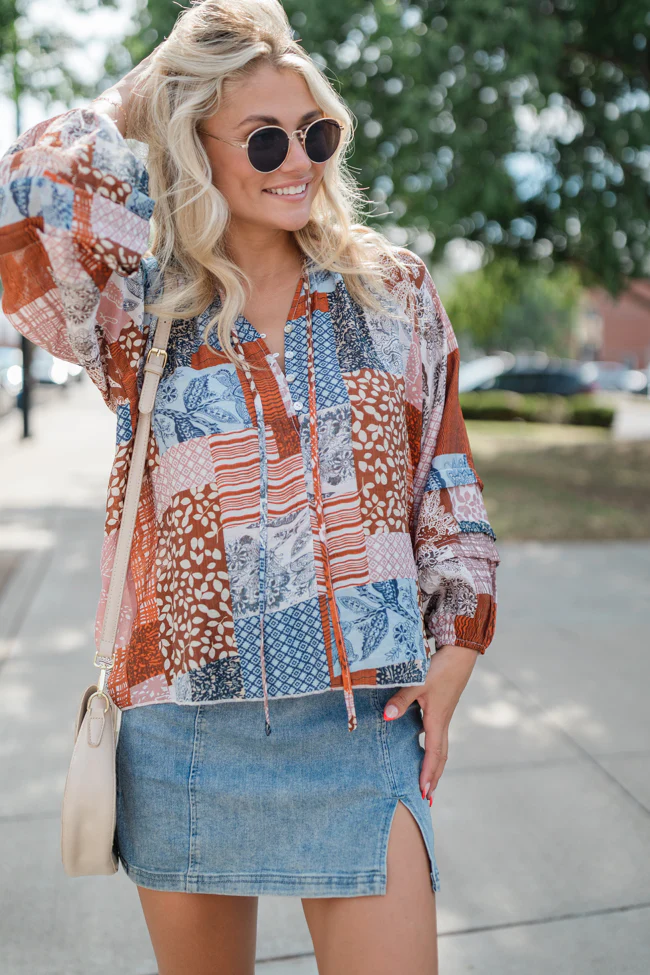 Outlook On Life Rust Multi Printed Boho Blouse FINAL SALE