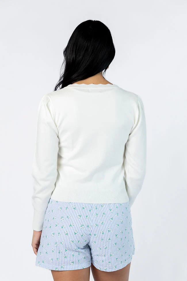 Perfect Clarity Ivory Scalloped Trim Cardigan