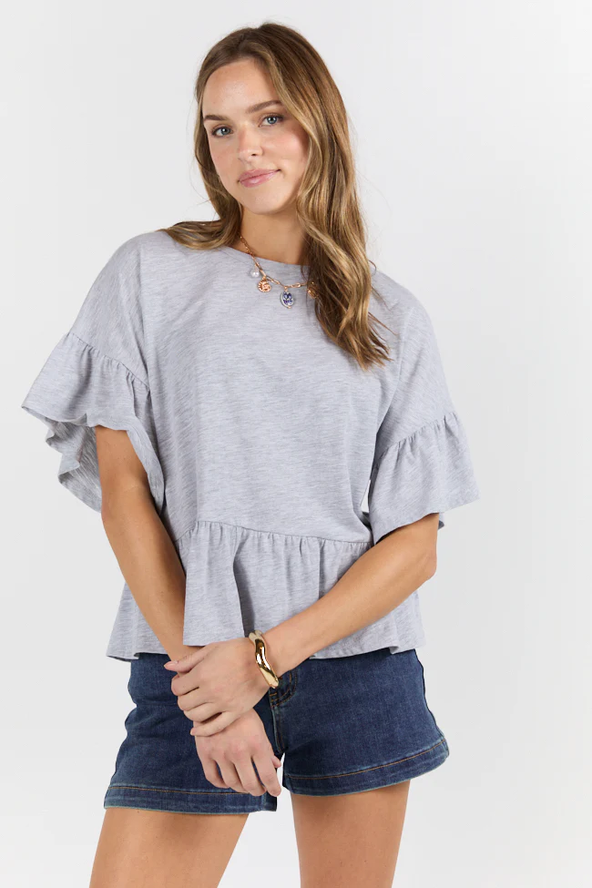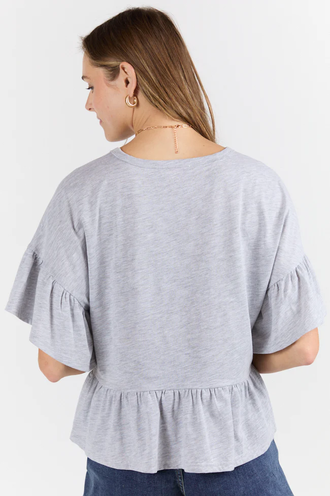 Perfect Grey Knit Ruffle Hem Tee SALE