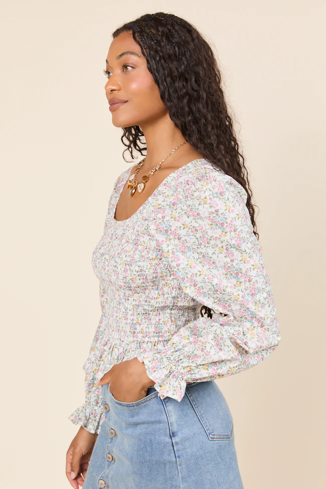 Over Under White Ruched Seamline Active Long Sleeve Top FINAL SALE