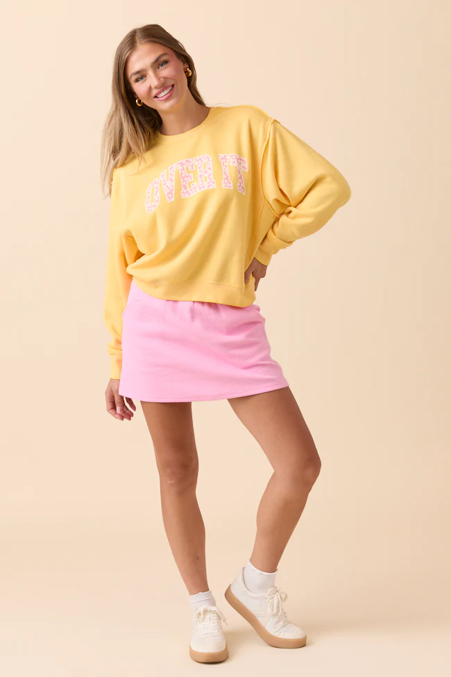 Over It Soft Pink Raw Hem Fleece Graphic Sweatshirt