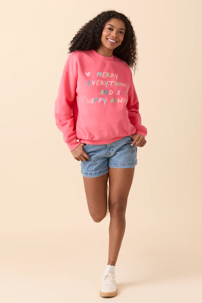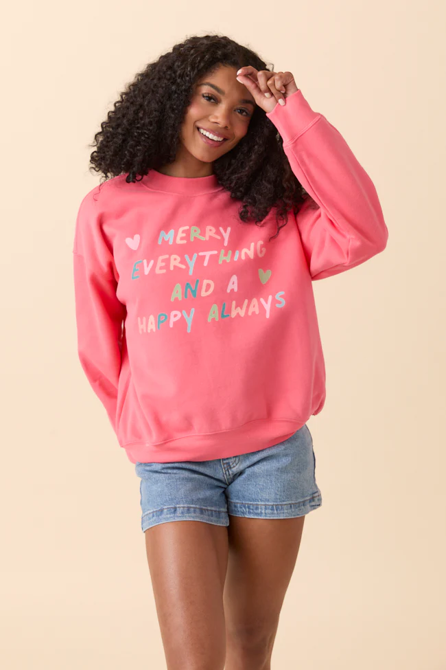 Merry Everything Light Red Graphic Sweatshirt