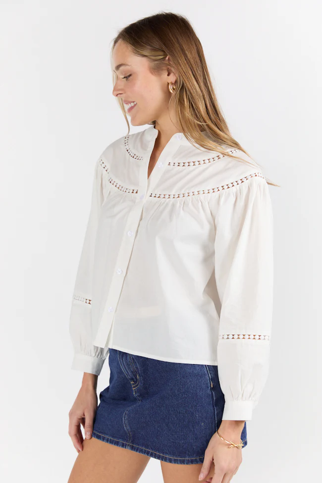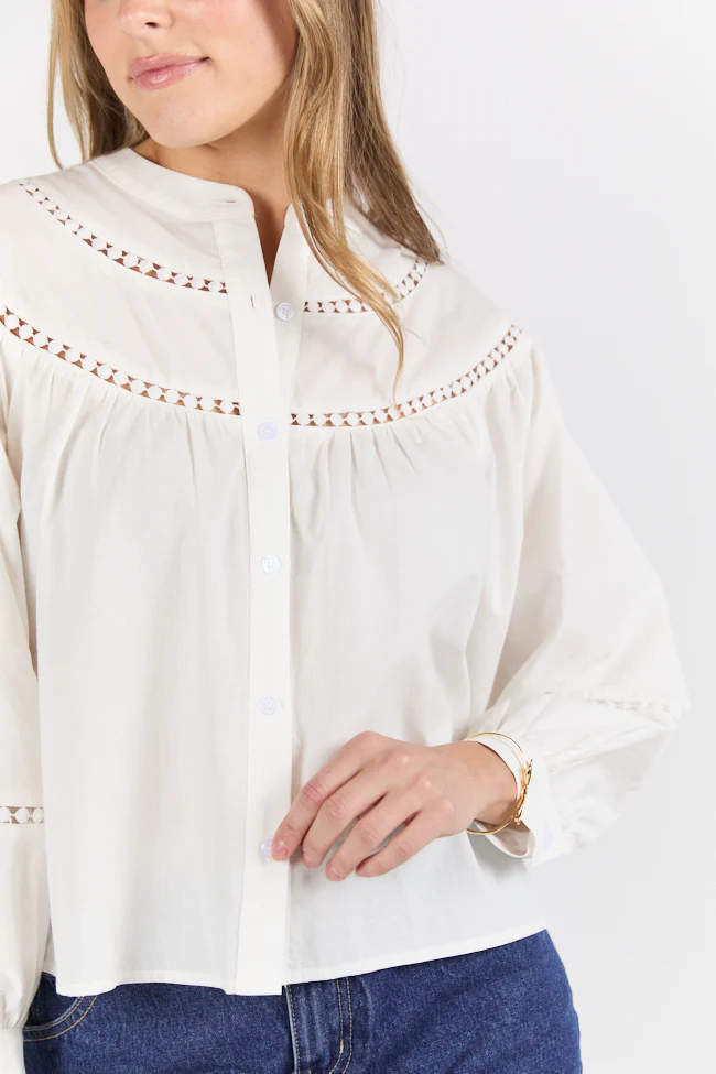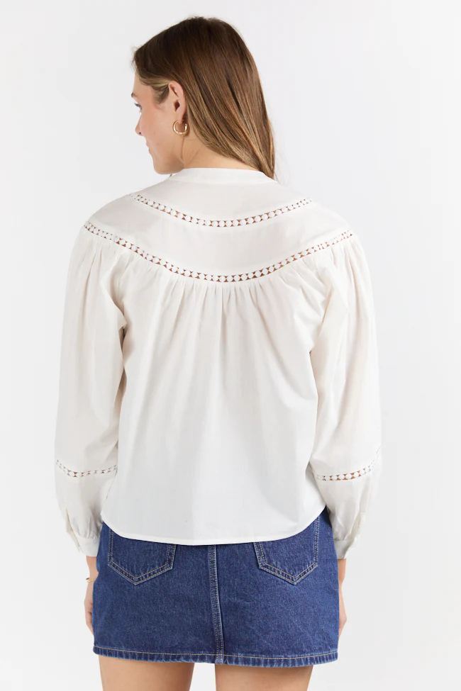 Memorable Moments Ivory Ladder Detail Long Sleeve Woven Blouse FINAL SALE