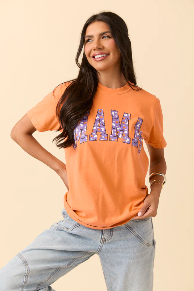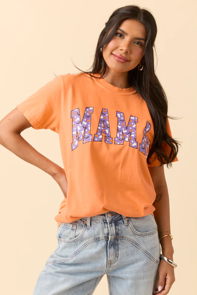 Mama Block Purple Halloween Print Burnt Orange Graphic Tee