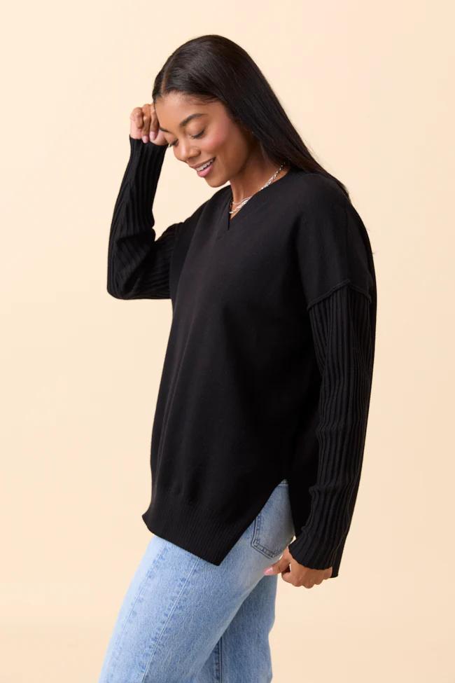 Mariah Black Relaxed Long Sleeve Pullover Tunic DOORBUSTER