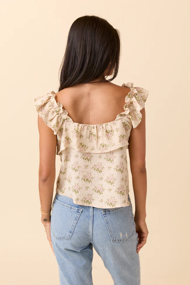 Mary Pink Ditsy Floral Printed Gauze Woven Tank