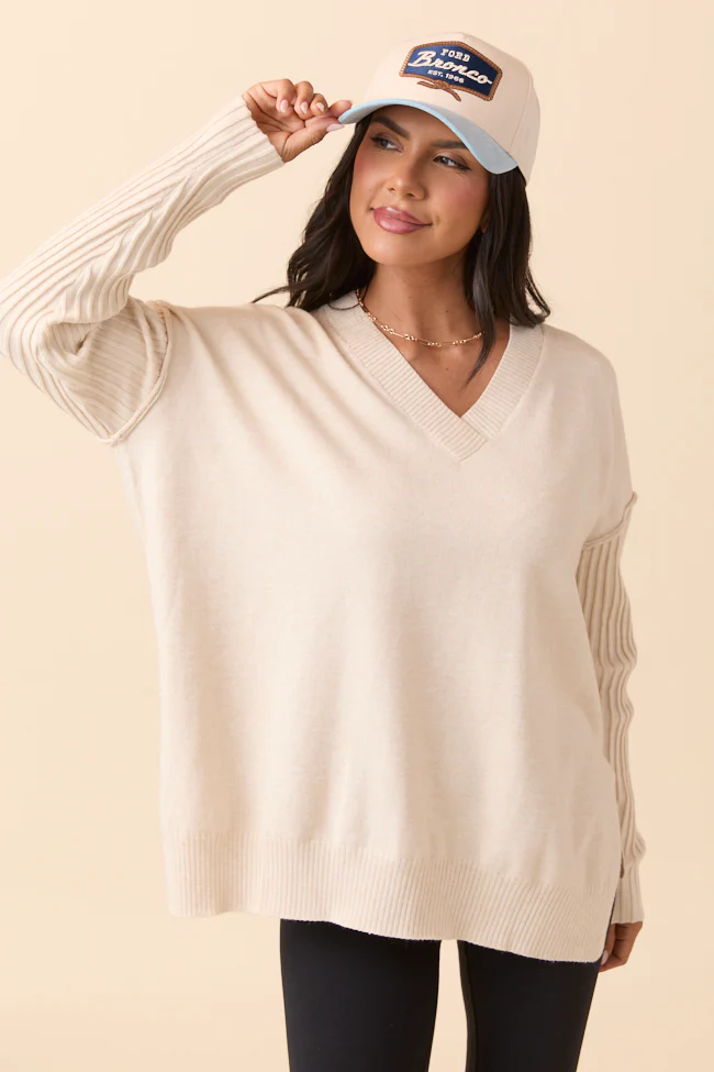 Meet At The Retreat Cream V-Neck Sweater Tank FINAL SALE