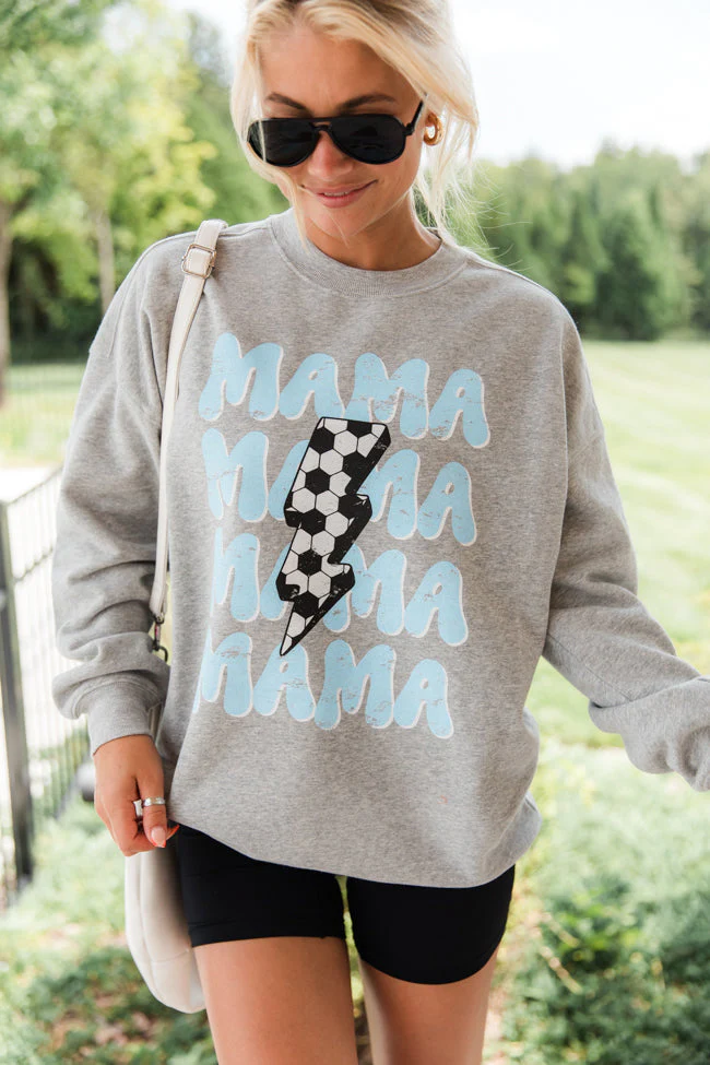 Mama Repeat Soccer Light Grey Graphic Sweatshirt