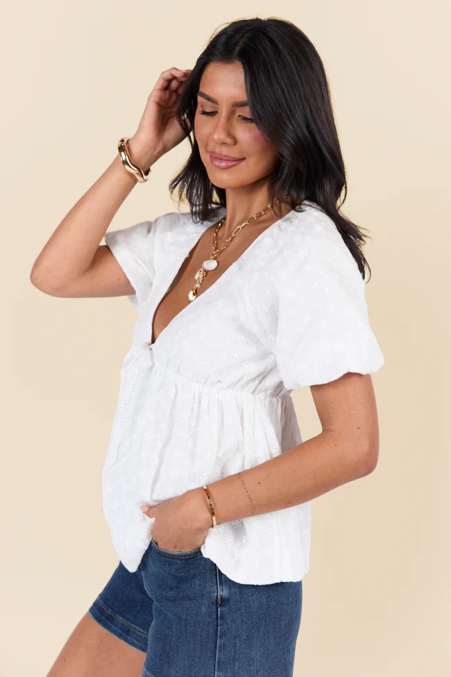Lovely Thoughts Ivory Embroidered Floral Bubble Hem Blouse FINAL SALE