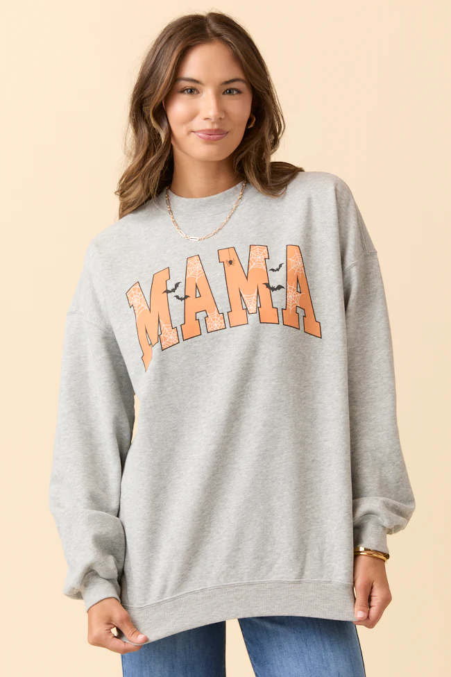 Mama Block Halloween Printed Light Grey Graphic Sweatshirt