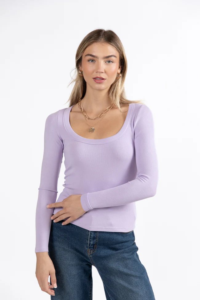 Make Your Choice Lilac Ribbed Scoop Neck Long Sleeve Tee FINAL SALE