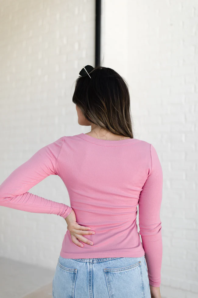Make Your Choice Pink Ribbed Long Sleeve Tee FINAL SALE