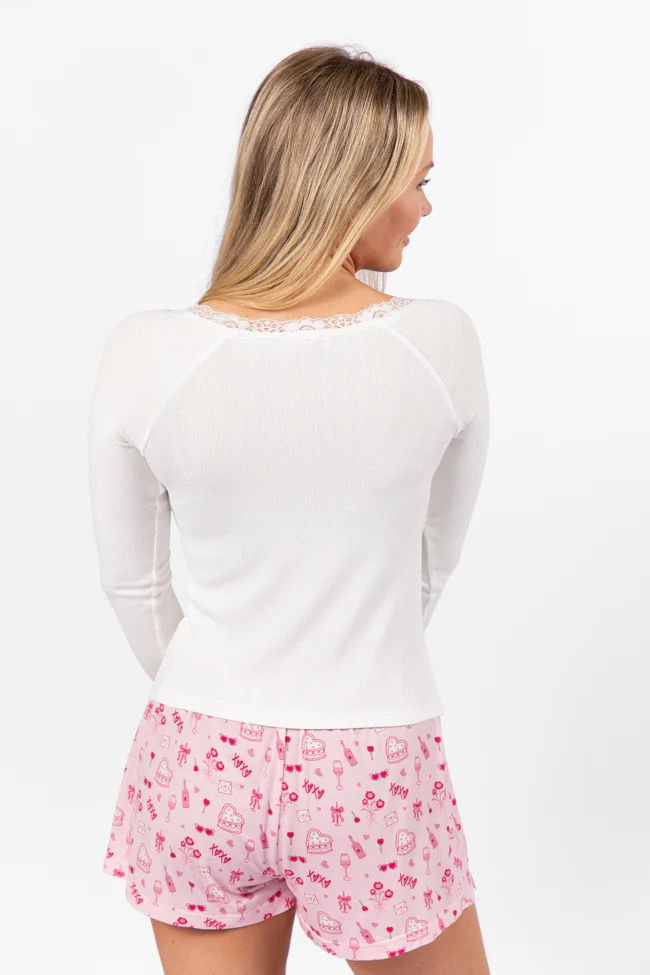 Make Or Break Pink and Ivory Contrast French Terry Short Sleeve Sweatshirt SALE