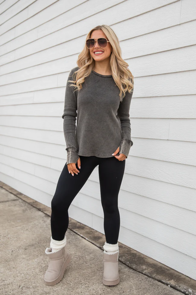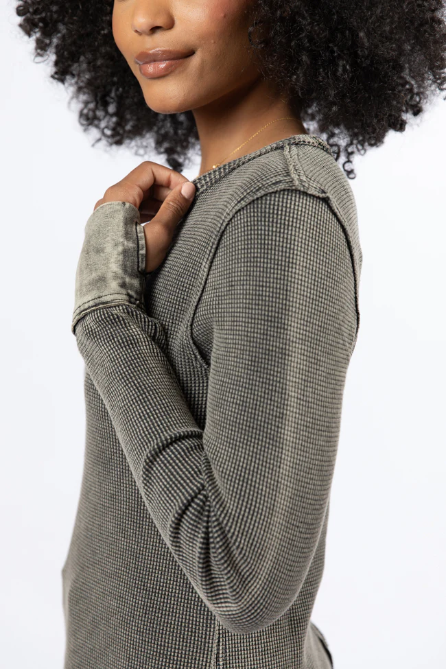 Make Your Choice Grey Ribbed Scoop Neck Long Sleeve Tee FINAL SALE