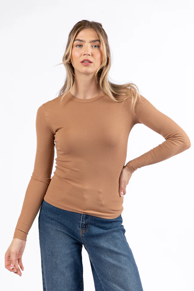 Make Your Choice Tan Ribbed Long Sleeve Tee FINAL SALE